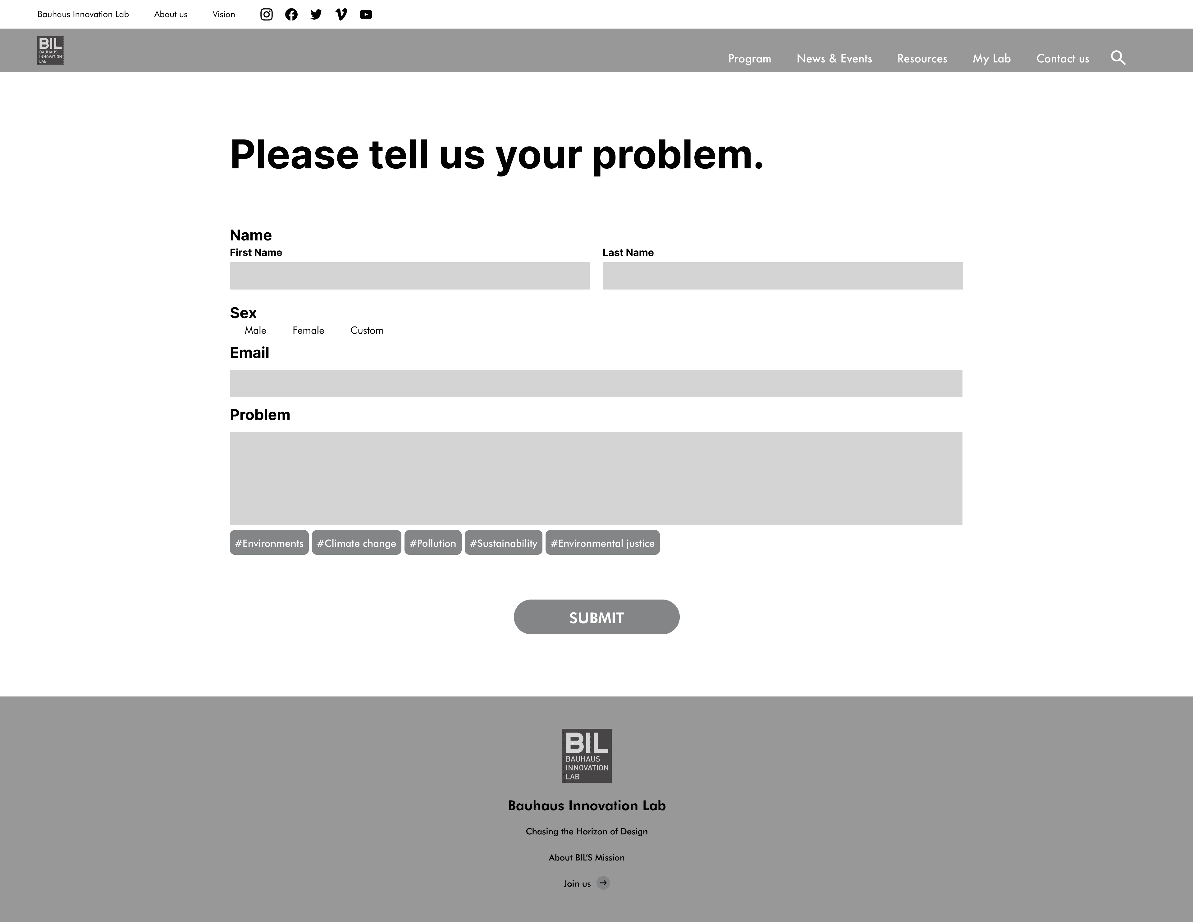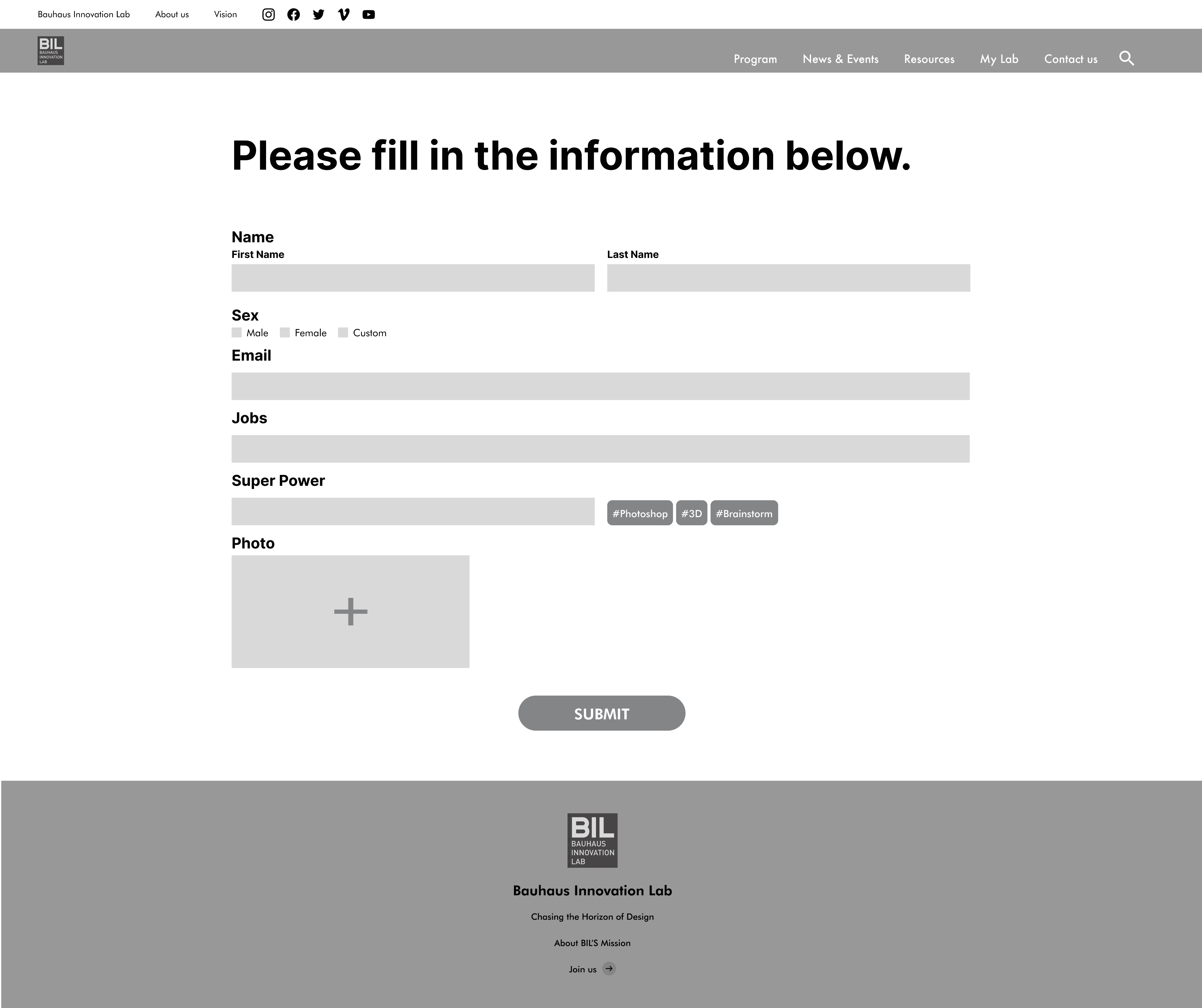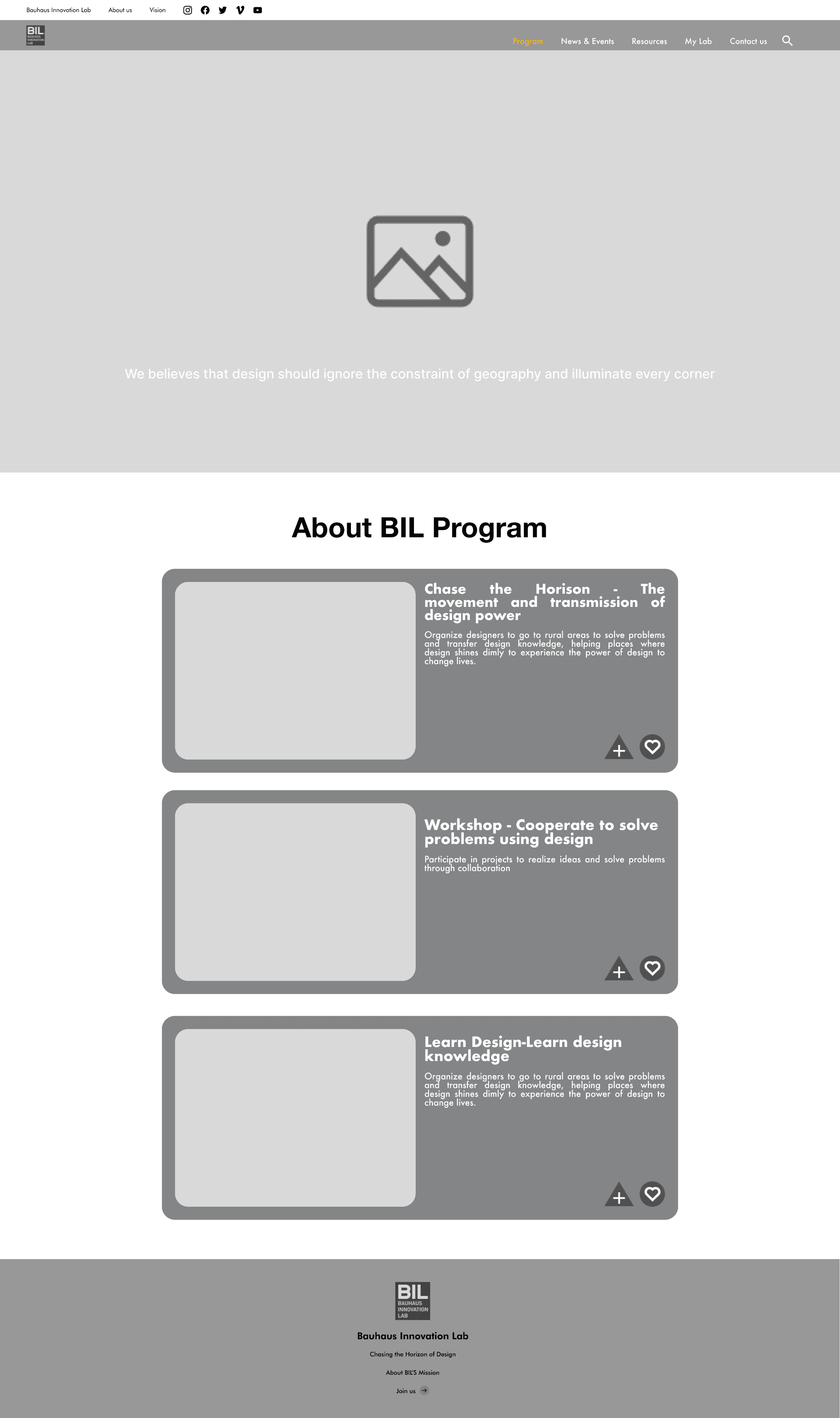 When we first started working on this project, it was difficult to determine a specific vision based on BIL's Vision. Faced with this problem, we decided to conduct a survey of design-related and non-design-related people. Based on the results of the survey, we extracted some keywords and combined them with our ideas to further determine the vision of the website.