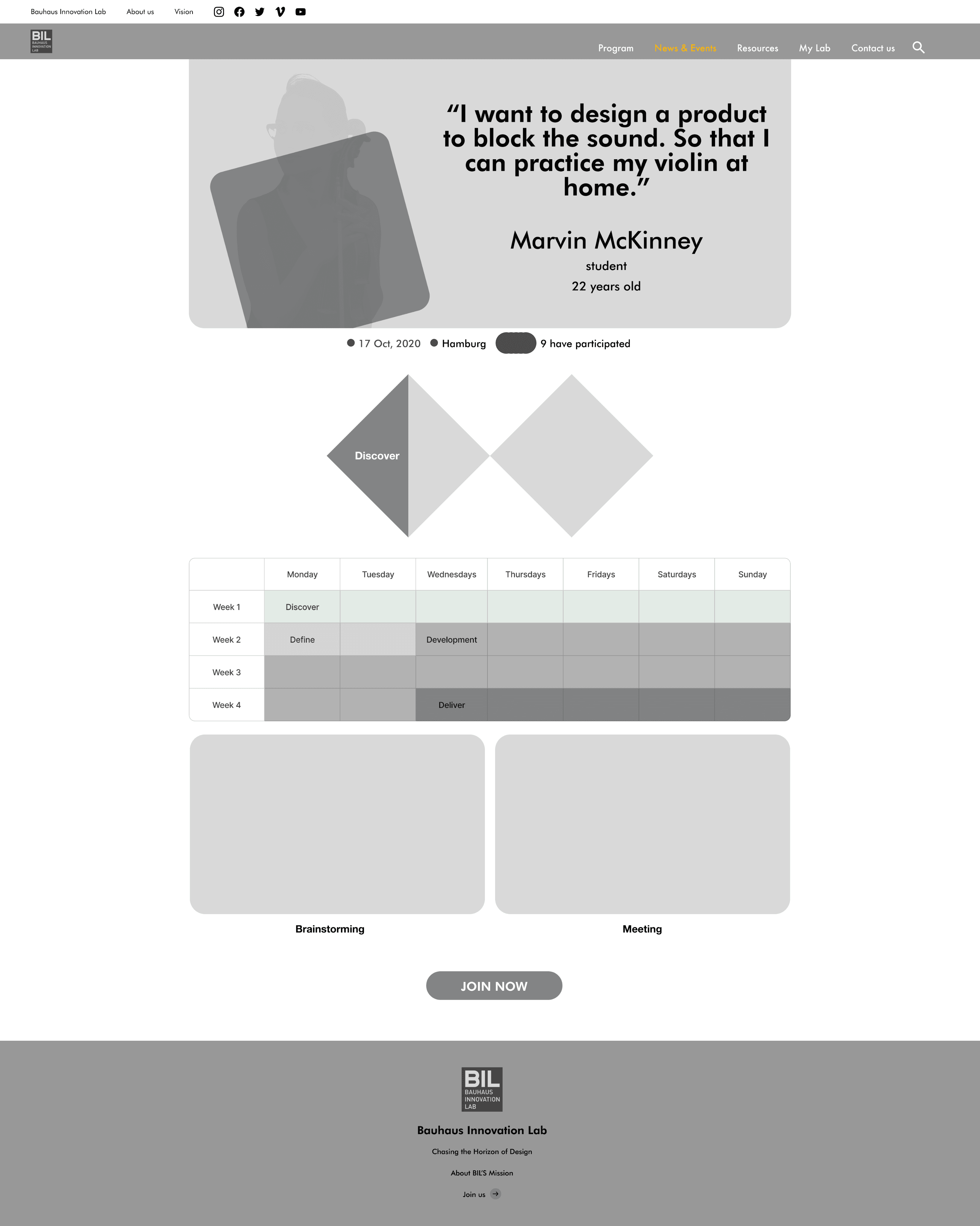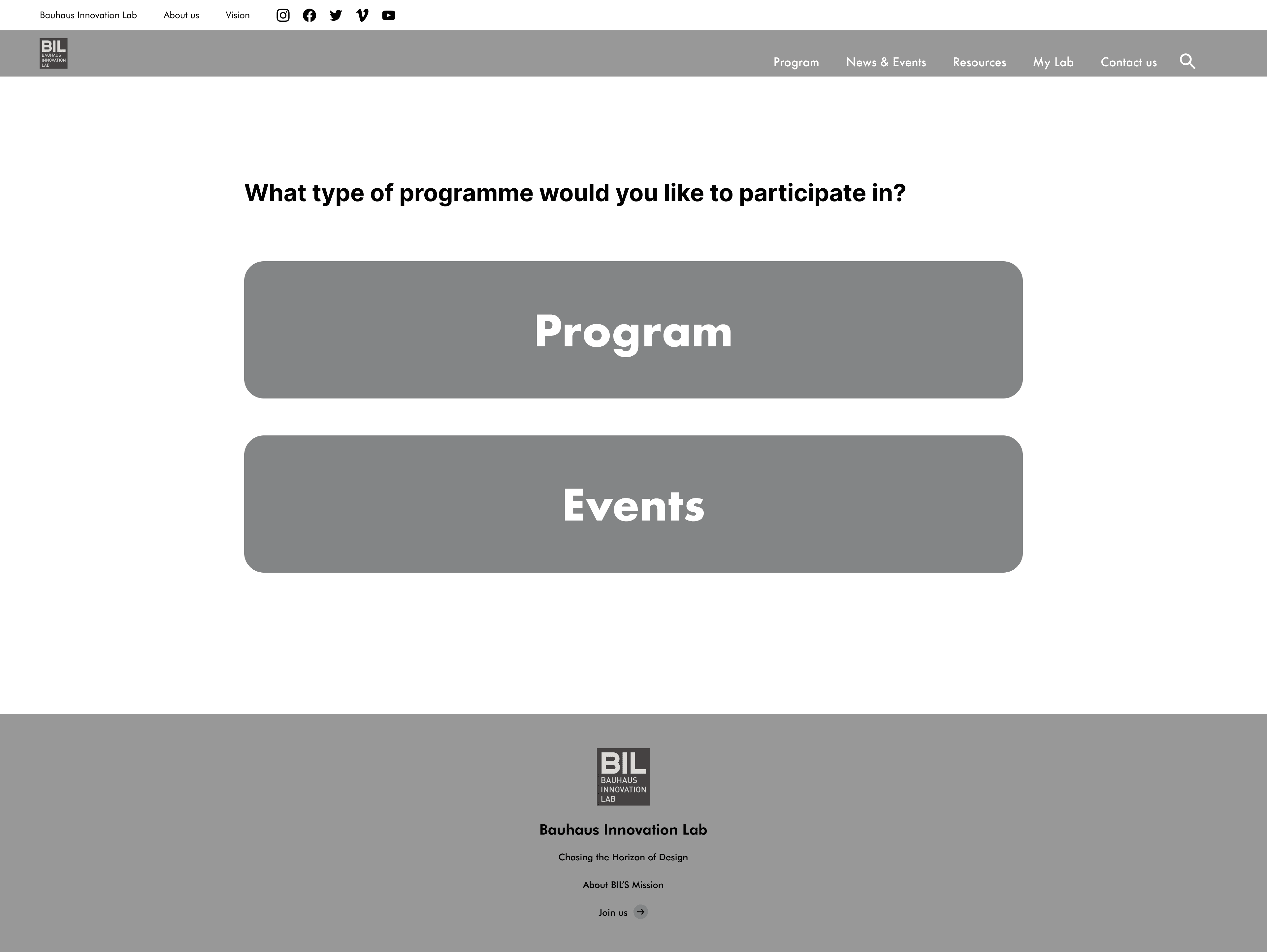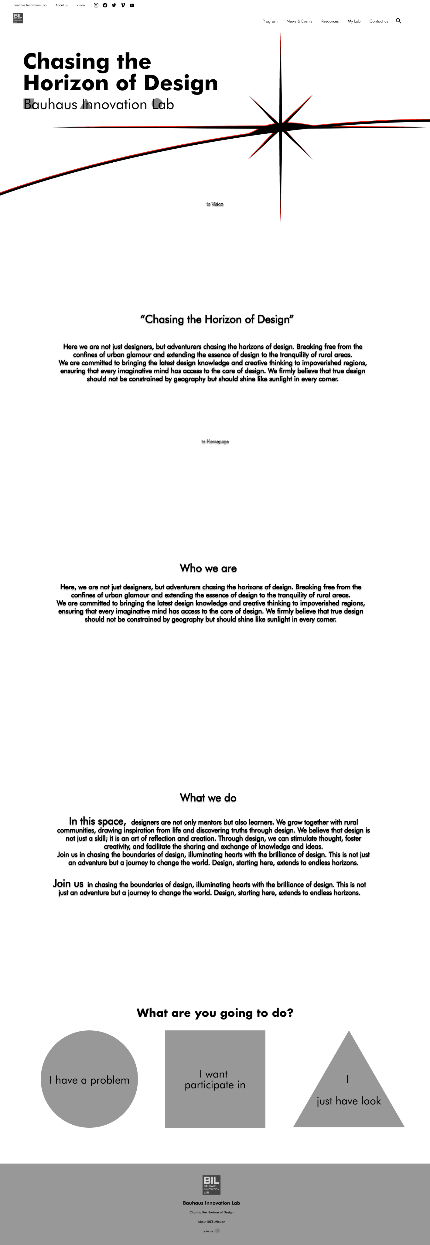 Dessau's HSA established Bauhaus Innovation Lab to study and promote team-based design-driven innovation activities between college students, teachers, society and enterprises. We reshaped BIL according to BIL's Vision and innovative spirit. Through understanding and investigation of BIL, we finally completed the design of BIL's website.