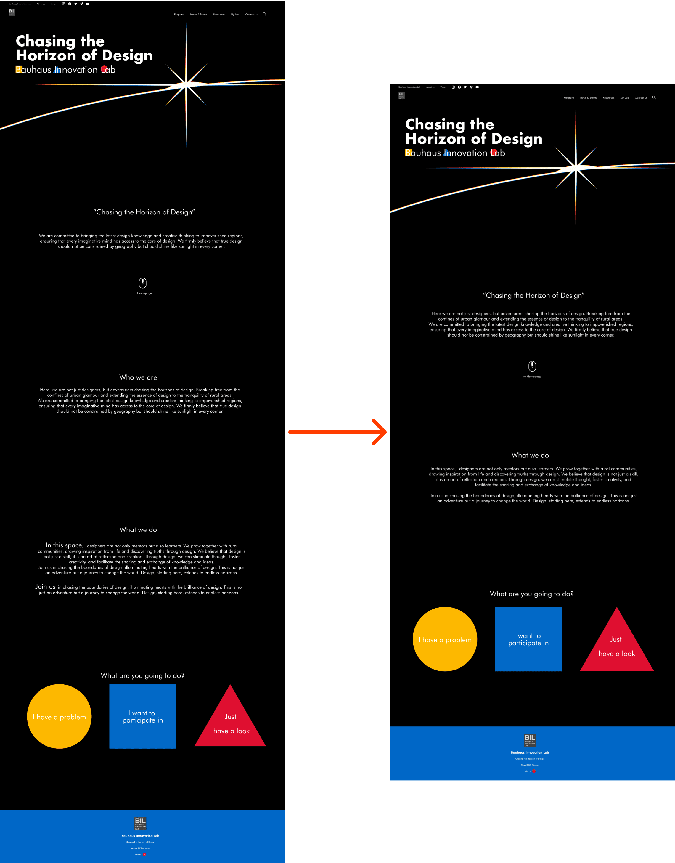 The visual style of the website is also very important. We don’t want to convey a very professional feeling, which will make users afraid to approach and explore. So we chose the classic Bauhaus color scheme of red, yellow, and blue. The overall style of the webpage is more game-like and youthful, which will stimulate users’ desire to explore.