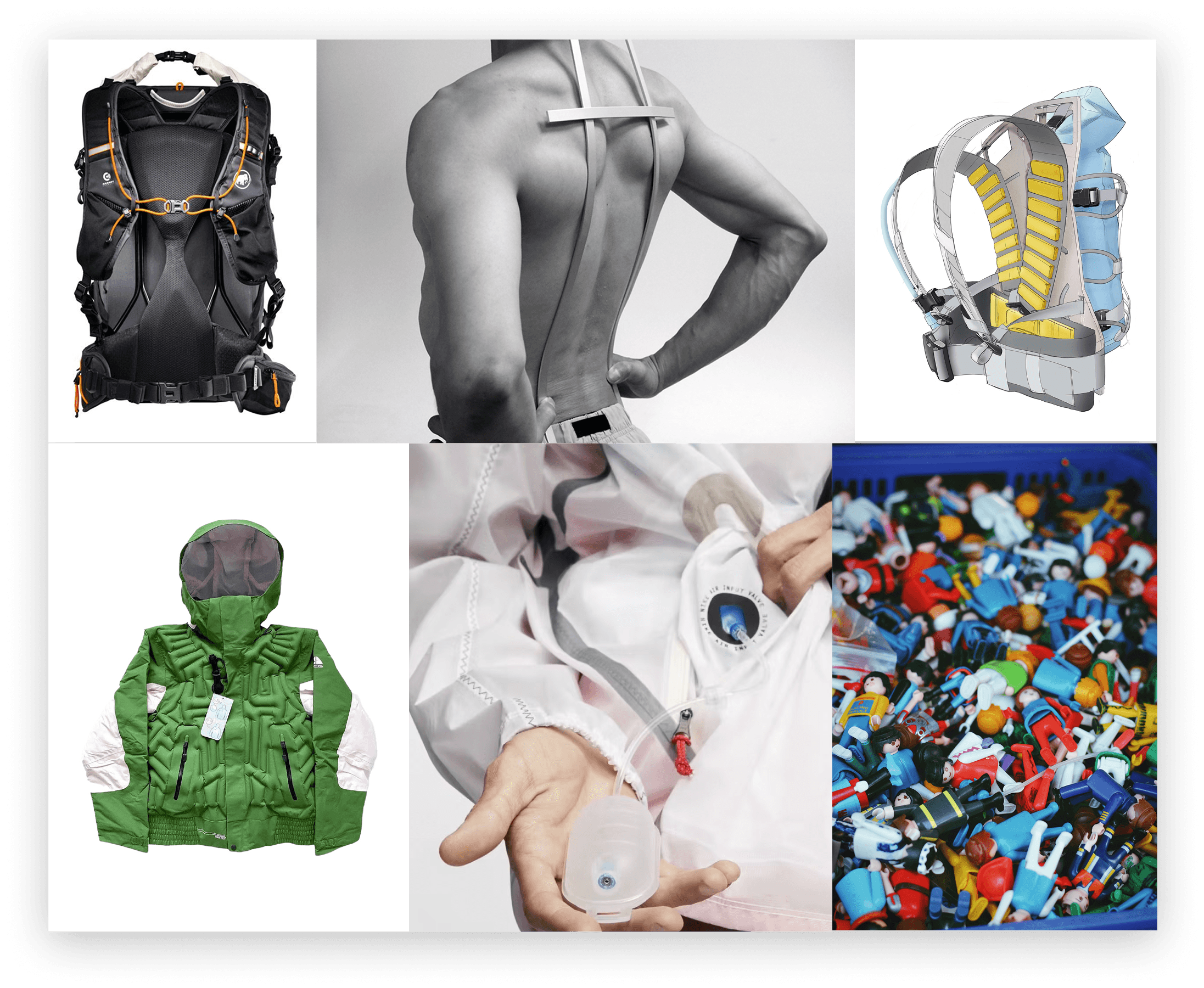 Mountaineering bag and air jacket are the two main products we refer to. By studying the structure of the mountaineering bag, we can determine a relatively reasonable structure that reduces the feeling of carrying. Products such as air jackets are inspired by foldable design. We hope to focus on this dilemma through the selection and consideration of materials and structures.